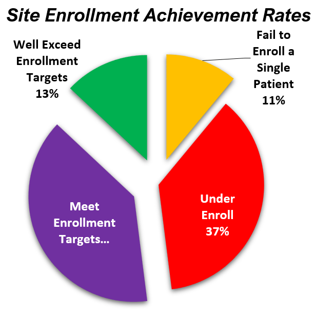 More customized protocols also impact site enrollment performance. “We're seeing 11 percent of sites fail to enroll a single patient and 37 percent under-enroll,” she said. “So that's still about half of sites are not meeting their enrollment targets.”